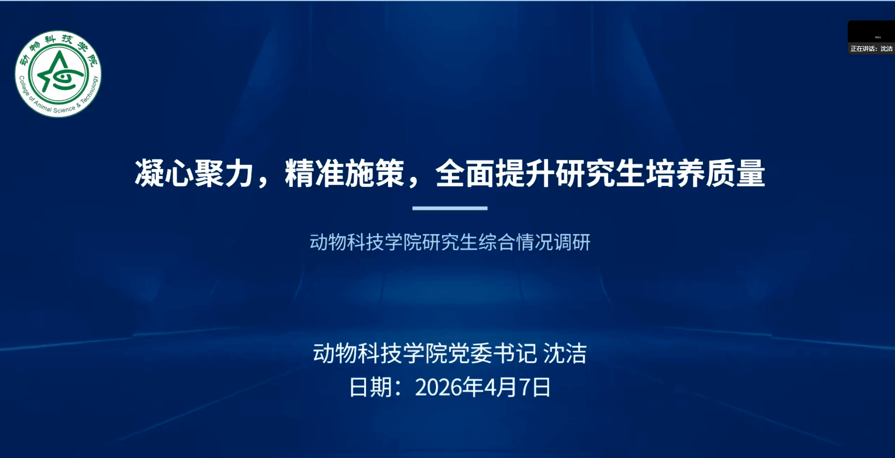 学院党委书记沈洁结合前期面向研究生的调研问卷,就学生现状与导师职责作了深入分析和重点强调。她指出,学业压力与就业压力是学生心理压力的主要来源,她强调,全体导师要深刻领会“导师是研究生培养第一责任人”的职责定位,将立德树人根本任务落实到日常指导全过程。她要求导师在加强科研指导和学术规范教育的同时,切实关注学生心理健康,主动做好职业规划与就业帮扶工作,利用自身资源为学生开拓就业渠道,构建平等、尊重、和谐的师生关系,在严管中体现厚爱。