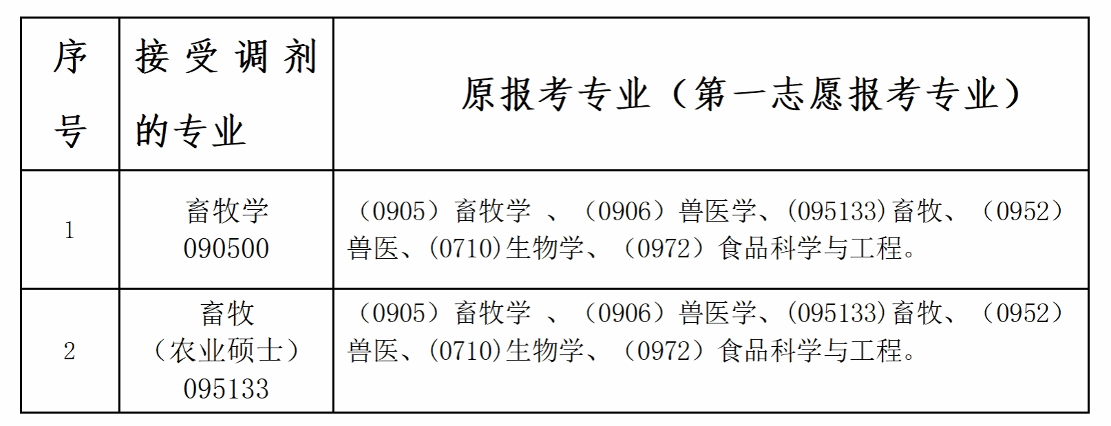 2.接受调剂的专业及原报考专业(第一志愿报考专业)要求如下: