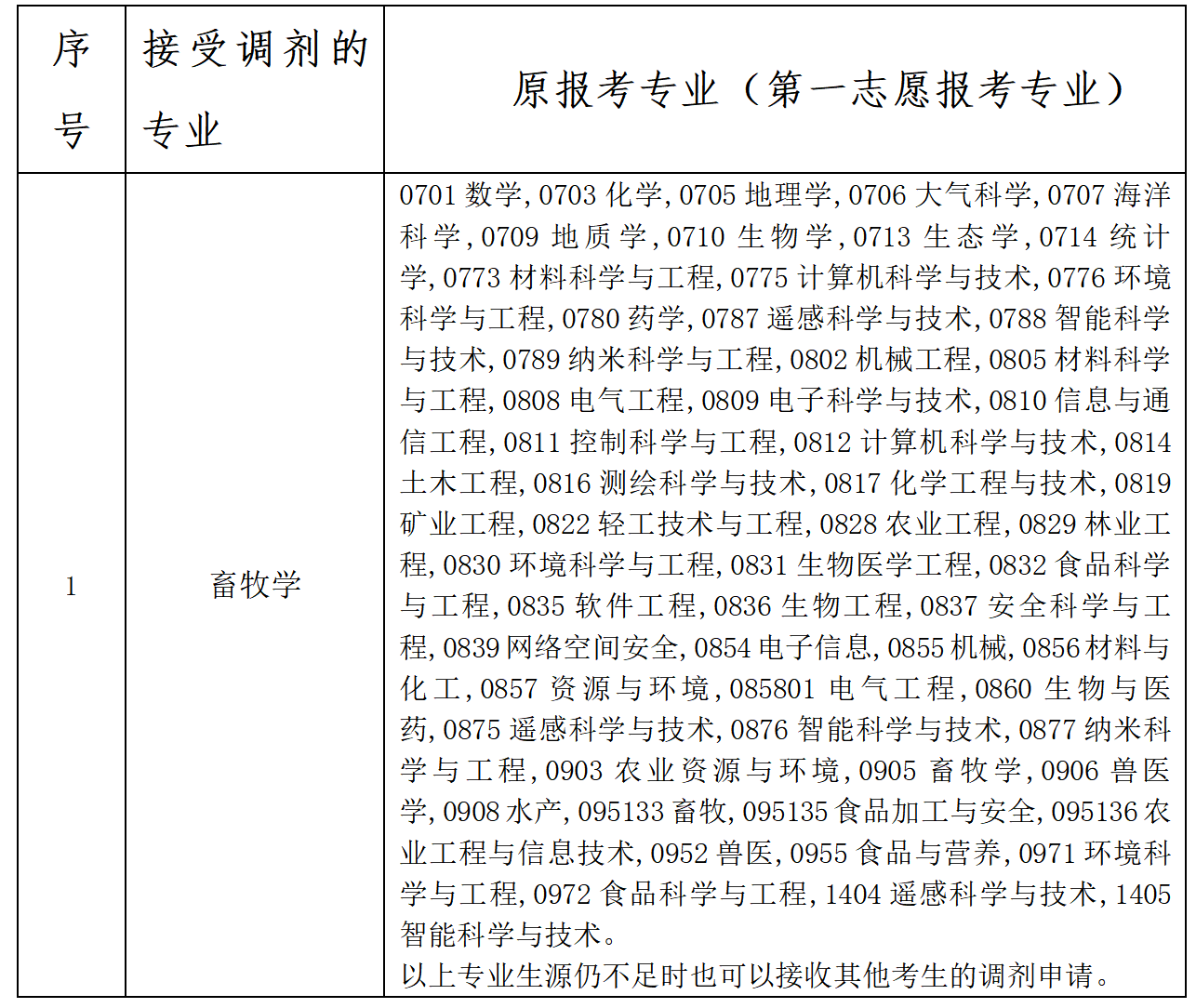 2.接受调剂的专业及原报考专业(第一志愿报考专业)要求如下: